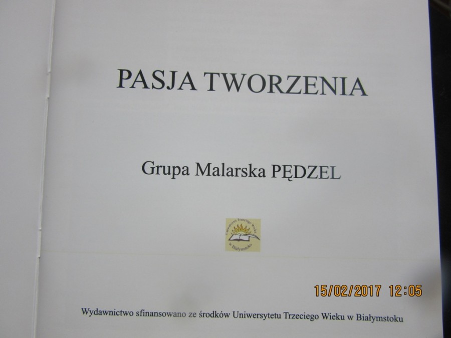 Dzięki dofinansowaniu z UTW w Białymstoku wydaliśmy w październiku 2016 r pamiątkowy albumik pt. „Pasja tworzenia” z ostatnimi pracami członków naszej grupy.
