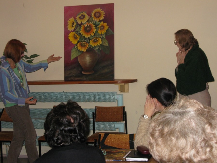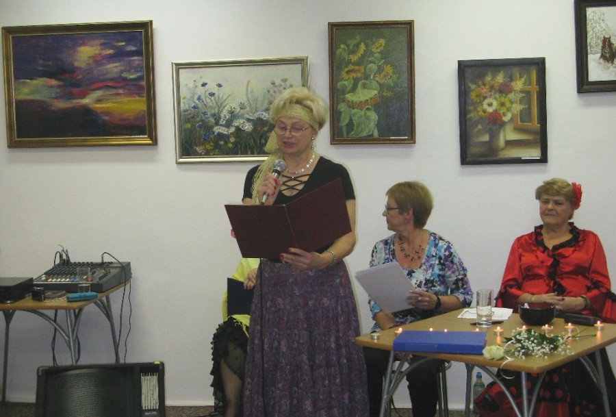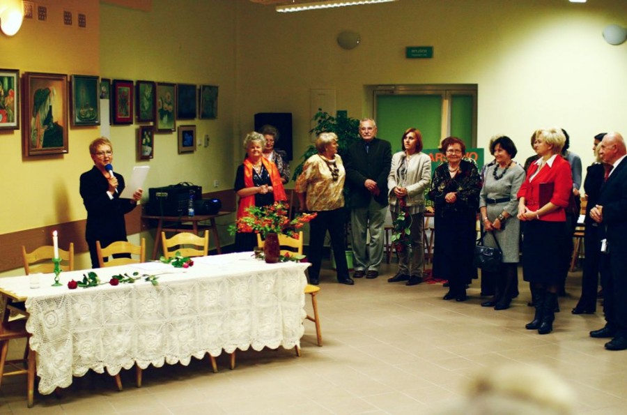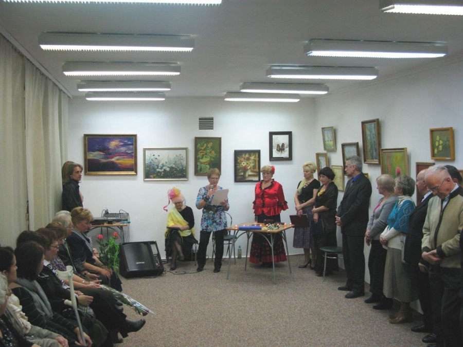 W klubie Jubilat spotkaliśmy się na kolejnej, już 15-tej wystawie malarskiej naszej grupy.Otwarcia wystawy dokonała kierownik klubu p. Alicja Sztorberg, następnie głos zabrały: p. Prezes UTW – Krystyna Szner,p. LiLa Wyszkowska - kierownik artystyczny oraz opiekun grupy - Anna Paszkiewicz-Gadek. Wernisaż wystawy uświetnił występ zespołu taneczno-chóralnego z projektu BASE pod kierunkiem Danuty Sajur.