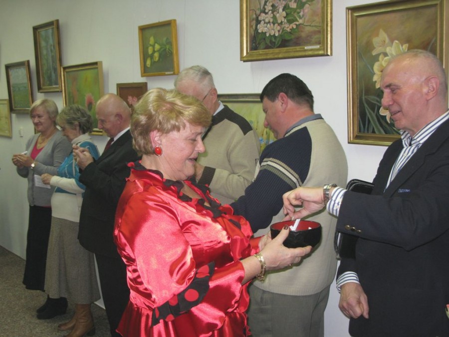 Po części poetyckiej zaprosiliśmy wszystkich gości na poczęstunek i oglądanie wystawy obrazów. Otrzymaliśmy podziękowania, gratulacje i kwiaty.