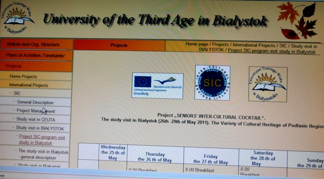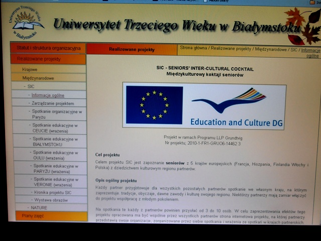 Wystawa obrazów pt."Rozmalowany wspomnieniami Trzeci Wiek" była pokazana w grudniu 2010 r.dzieciom z Domu Dziecka "Dobry Pasterz". Podczas wystawy seniorzy Uniwersytetu Trzeciego Wieku w Białymstoku mieli okazję do przekazania najmłodszej generacji naszego społeczeństwa swoją wiedzę i swoje wspomnienia o starym Białymstoku oraz dziedzictwie kulturowym Podlasia. Było to miłe i serdeczne spotkanie naszych seniorów i sierot z Domu Dziecka, które wszyscy wspominają do dzisiaj. Między innymi w ten sposób zrealizowaliśmy jedno z zadań projektu SIC - przekazywanie przez seniorów wiedzy i wspomnień o tradycji i kulturze regionu Podlasia młodszemu pokoleniu zw. integracją pokoleniową.