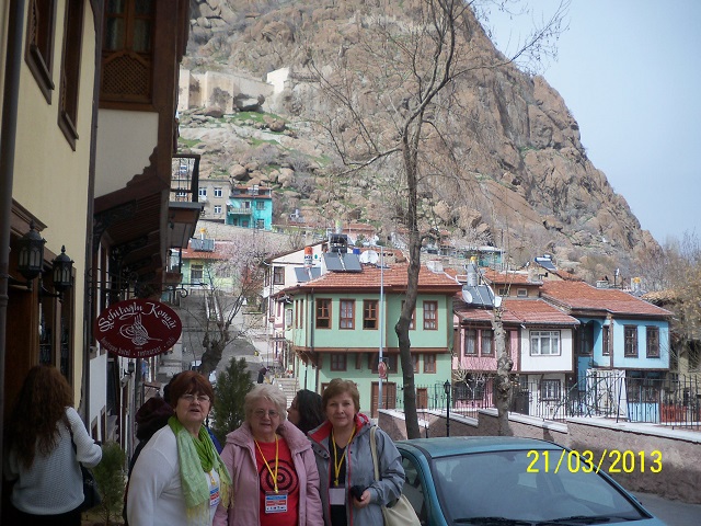 W drodze na obiad zwiedzaliśmy Afyon. Z ochotą fotografowałyśmy urokliwe uliczki starego miasta, oświetlone wiosennym słońcem. Gdzieniegdzie wychylały się obsypane kwiatami gałęzie drzew. Z minaretów, które urozmaicają zabudowania miasta, dało się słyszeć nawoływanie do modlitwy. Z zaciekawieniem patrzyłyśmy na odmienne od naszych stroje kobiet, na stragany pełne przypraw i suszonych owoców.