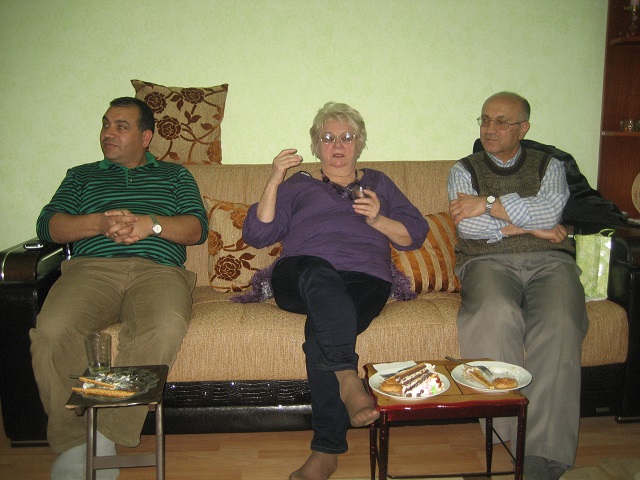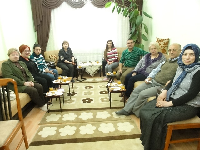 Abdullah TEMEL –koordynator, którego znałyśmy wcześniej z programu „Nature” zaprosił nas na spotkanie do swojego mieszkania. Mieszkanie było duże, pięknie urządzone i lśniło czystością. W spotkaniu brała udział żona Abdullaha i kuzynka żony, oraz pan, który był Imamem z Meczetu. Porozumiewałyśmy się przez tłumaczkę, młodą dziewczynę, która z angielskiego tłumaczyła na język turecki.
