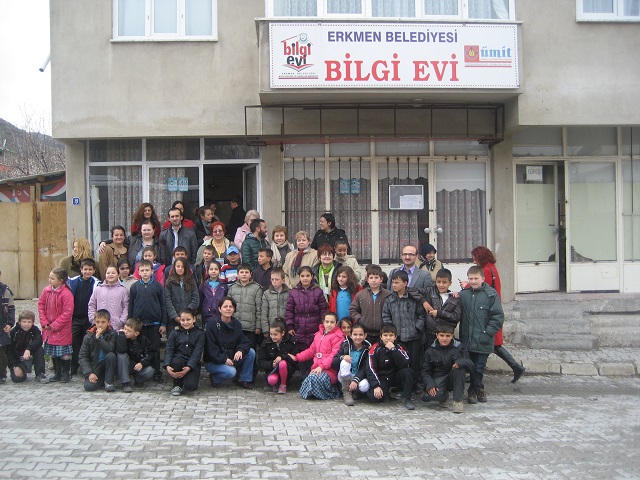 Następnym punktem programu był wyjazd doErkman. Tutaj w szkole przywitał nas Abdullah TEMEL oraz grupa dzieci z uboższych rodzin w wieku około 8 – 9 lat, która zaczynała poznawać j. angielski. Uczniowie byli bardzo przejęci rolą, pytali nas o imiona i mówili, że miło im ze nas widzą(oczywiście po angielsku). Widać było jak bardzo to spotkanie przeżywali.