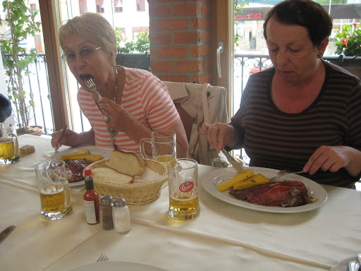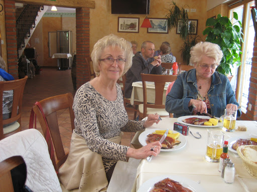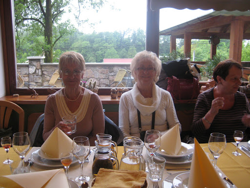 Po wizycie w muzeum udaliśmy się na obiad do gospodarstwa agroturystycznego położonego wysoko w górach. Obiad był tradycyjny, typowo wiejski, ale uroczysty. Podano nam powitalnego drinka w postaci różnych, własnej roboty, nalewek. Jedliśmy bulion z serem, ziemniaki z kapustą, żeberkami i kiełbasą. Degustowaliśmy sery i pierogi regionalne (potice) ze słodkim nadzieniem. Potice były wykonane przez bardzo starą, 92 letnią, kobietę, która dostała od nas moc oklasków. Obiad był bardzo smaczny i zjedliśmy go z wielkim apetytem.