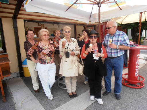 Podczas spaceru po Bovec spotkaliśmy grupę seniorów z Polski i Słowenii. Nawiązaliśmy ciekawą rozmowę i wymieniliśmy wrażenia z pobytu w Słowenii. Okazało się, że byli to seniorzy z UTW z Bytomia i seniorzy z UTW w Nowym Mieście w Słowenii, którzy wspólnie wybrali się na zwiedzanie Słoweni. Polacy z Bytomia pracowali w Słowenii w ramach wolontariackiego projektu Grundtviga i bardzo nam zachwalali ten projekt.
