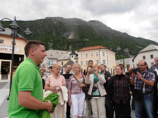 15.30: Zwiedzanie miasta Bovec i okolic przygotowane dla uczestników projektu CONGENIAL przez grupę młodych ludzi, zdających egzamin na przewodnika turystycznego -- jako międzypokoleniowe przekazanie