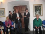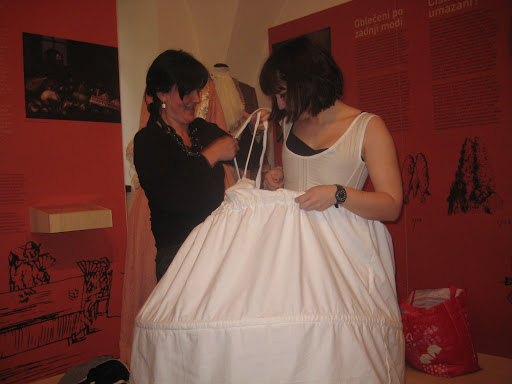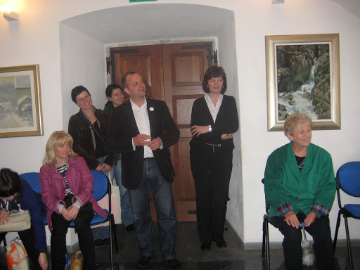 Po przerwie na kawę odwiedziliśmy Muzeum Miejskie w Tolminie znajdujące się w rezydencji Coronini z drugiej połowy XVIII wieku. Posiada ono bogate zbiory dokumentujące dziedzictwo kulturowe i historię regionu oraz nietypowe prezentacje zasobów muzealnych. Wystawa czasowa w muzeum jest związana z trzechsetną rocznicą powstania w Tolminie. W muzeum powitała nas dyrektor muzeum Damjana Cernilogar oraz mer miasteczka Tolmin. Do najciekawszych punktów programu zwiedzania należała prezentacja, w której starsze kobiety prezentowały prace związane z obróbką wełny pozyskiwanej od owiec hodowanych w dolinie Socza. Interesującym był też pokaz, w którym brała udział jedna z uczestniczek projektu „Congenial”. Została ona krok po kroku ubrana w strój damy dworu. Bardzo ciekawa była też ekspozycja dotycząca czasów budowy socjalizmu na terenach byłej Jugosławii, w skład której, miedzy innymi, wchodziła Słowenia.