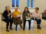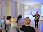 W drugiej części pani profesor przeprowadziła warsztaty, w których pokazała w jaki sposób odbieramy informację o uchodźcach i dlaczego mamy tak różne sposoby odbierania tych informacji, różne odczucia, empatie, itd. . Wynikło z tego, że ludzie kreatywni są bardziej otwarci, bardziej obiektywni i mają więcej zrozumienia i empatii do innych osób, którzy są w różnego rodzaju kłopotach np. dla uchodźców. Nie irytują się na takie osoby i najczęściej uruchamiają myślenie jak konstruktywnie pomóc tym ludziom w rozwiązywaniu ich kłopotów i nie obawiają się problemów z tym związanych. Grupa uczestnicząca w wykładzie okazała się być bardzo uczuloną na nieszczęścia uchodźców.