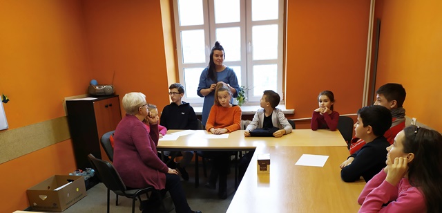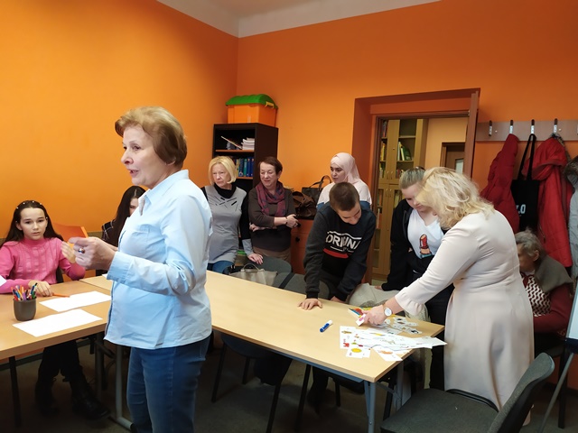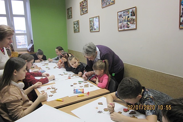 W okresie ferii zimowych 2020 r. współpraca wolontariuszy - seniorów z projektu KCA z dziećmi i młodzieżą polegała na spędzaniu wolnego czasu na rożnych zajęciach fakultatywnych przygotowanych przez Fundację Dialog a konkretnie przez Panią Natalię Mikulicz. Były to różne gry, zajęcia ruchowe, plastyczne, manualne, zajęcia poprawiające znajomość np. języka polskiego, wiedzy o naszym mieście, umiejętności gastronomiczne oraz uczestniczenie w spektaklach teatralnych i filmowych. Spotykaliśmy się w godzinach 10 - 14.00, najczęściej dzieliliśmy się na grupy ze względu na dużą liczbę uczestników tych zajęć a mianowicie dzieci czeczeńskich z obozu dla uchodźców ale i uczni polskich. Nasze seniorki (Anna Paszkiewicz-Gadek, Alicja Temler, Alicja Adamowicz, Teresa Lautsch, Walentyna Łuksza, Maria Beręsewicz, itd.) zajmowały się głównie dziećmi uchodźców. Poniżej krótki opis wybranych zajęć