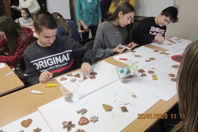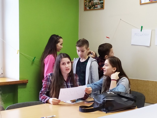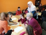 W kolejną (sobotę) 7 grudnia 2019 nasi słuchacze spotkali się w Fundacji „Dialog” z dziećmi i młodzieżą cudzoziemców, którzy osiedlili się w naszym mieście (Ukraińców, Białorusinów, Rosjan, Czeczenów). Pomagaliśmy im w odrabianiu lekcji, a właściwie w zrozumieniu niektórych zagadnień sprawiających kłopoty w szkole. Są to, np. działania na ułamkach, zmiana jednostek miary, wagi, długości, piramida żywieniowa i budowa przewodu pokarmowego, siatka geograficzna, podział świata na kontynenty, święta w Polsce, ćwiczenia z języka angielskiego.
