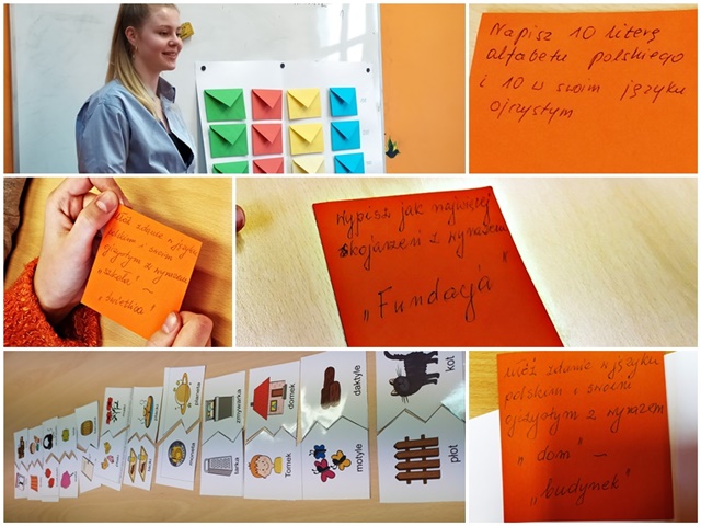 „Wesoła gromadka dzieci i wolontariuszy świętowała w Fundacji Międzynarodowy Dzień Języka Ojczystego. Bawiliśmy się więc słowami, odpowiadając na pytania dotyczące języka polskiego jak i tego z ojczyzny naszych dzieci. Oprócz tego były rebusy, puzzle i pisanie zdań w różnych językach, robienie kartek itd... Czyli niezwykle twórcza sobota!”