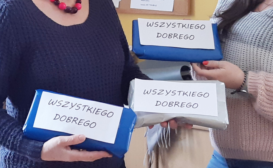 W przerwie między zajęciami wszystkie dzieci otrzymały prezenty Mikołajkowe przygotowane przez słuchaczy Uniwersytetu Trzeciego Wieku w Białymstoku. Składały się na nie słodycze, książki, maskotki, przybory szkolne zebrane przez sekcję Kreatywność i uczestników projektu KCA. Ładnie zapakowane sprawiły im wielką niespodziankę. Bardzo cieszyły się z otrzymanych prezentów.
