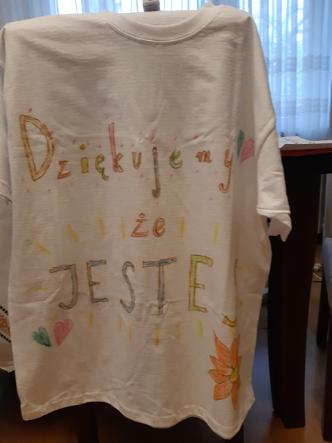 Z kolei Fundacją Dialog doceniła nas i też przygotowała nam upominki w postaci koszulek z napisem ,,Dziękujemy ze jesteś,, i czekolady.
