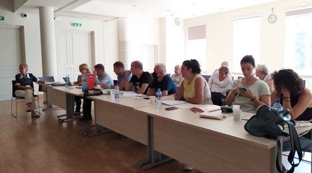 O tych doświadczeniach własnych z pracy dziećmi również opowiedziała. Padało wiele pytań od uczestników spotkania z Włoch i Turcji . Koordynator Włoch pytała o własne odczucia pracy z uchodźcami, nawiązała się dyskusja o integracji we Włoszech, Hakki Bilgen o emigracji Turków do Niemiec, o sportowcach, o islamie, o braku ekspansji uchodźców do Arabii Saudyjskiej i wiele innych tematów głównie dotyczących codziennych problemów dzieci uchodźców na Podlasiu ….