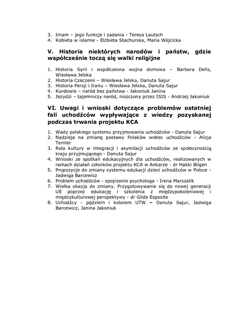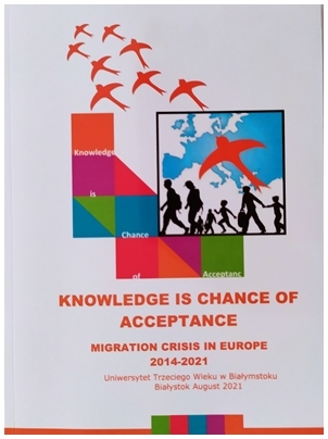 1. Książka w języku angielskim pt. „Wiedza jest szansą dla akceptacji” zawierająca analizę statystyczną problemu uchodźstwa w Europie i w krajach partnerskich wraz z wnioskami dotyczącymi problemu uchodźstwa w krajach partnerskich. Książkę tę, w języku angielskim opracował głównie partner turecki (GlobDev z Ankary) oraz w części partner polski (UTW Białystok) i włoski (MoCa z Uniwersytetu we Florencji).