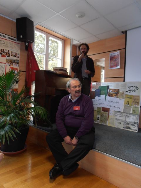 |  |  |  | | wystąpienie Leopolda Braunsteina Prezydenta Centre Medem | prezentacja multimedialna Constance Paris de Bollardiere i Erez levy | Ida Papiernik, bibliotekarka z Centre Medem | Maurice Bajcz Prezes CLEJ, Constance Paris de Bollardiere,Emil Papiernik, Erez Levy |