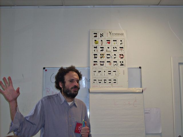 |  |  |  | | warsztaty nauki języka żydowskiego | alfabet żydowski prezentuje Erez Levy | podczas warsztatów nauki języka yiddish | Danuta Sajur i Danuta Łada, Polska |