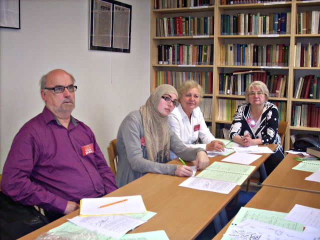 Cześć grupy uczestniczyła w warsztatach nauki języka żydowskiego. Wprowadzenie do języka, historię języka , jego strukturę , zasady pisowni przekazał Erez Levy, nauczyciel języka żydowskiego, tłumacz języków hebrajskiego i angielskiego, pracownik Centre Medem.