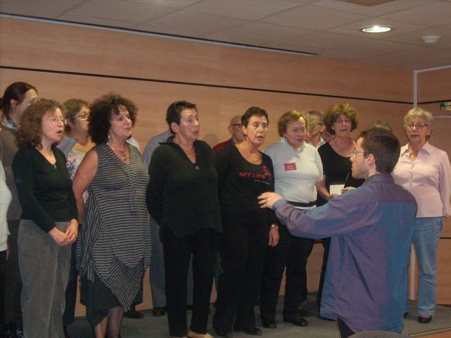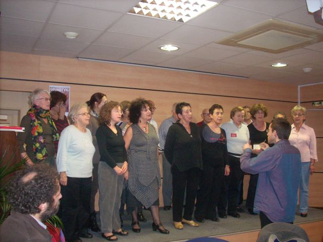 Do Centre Medem wróciliśmy około godz. 18:30 na próbę Chóru „Didl Dam” prowadzonego przez Jeremiego Gerszanowilsza. Próba chóru rozpoczęła się ćwiczeniami rozgrzewającymi i rozluźniającymi mięśnie górnego tułowia. Chór z Centre Medem śpiewa w różnych językach , występuje we Francji i poza jej granicami. Ma na swoim koncie wiele sukcesów i nagród.